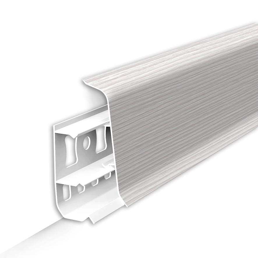 Дизайнерская серия напольного плинтуса со скошенными прямыми углами среднего размера 5.5 см., подходит абсолютно для всех видов помещений, большой ассортимент цветов позволяет определенно точно подобрать материал под дизайн интерьера и напольные покрытия.