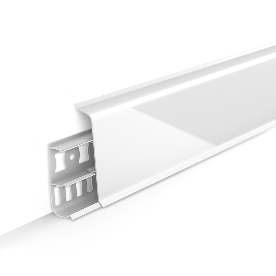 Дизайнерская серия напольного плинтуса со скошенными прямыми углами среднего размера 7 см., подходит абсолютно для всех видов помещений, большой ассортимент цветов позволяет определенно точно подобрать материал под дизайн интерьера и напольные покрытия.