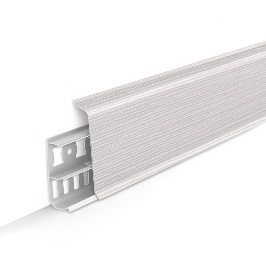 Дизайнерская серия напольного плинтуса со скошенными прямыми углами среднего размера 7 см., подходит абсолютно для всех видов помещений, большой ассортимент цветов позволяет определенно точно подобрать материал под дизайн интерьера и напольные покрытия.