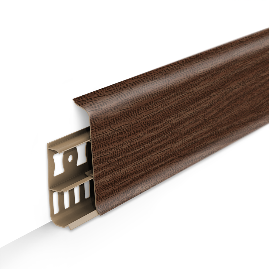 Дизайнерская серия напольного плинтуса со скошенными прямыми углами высотою 8.5 см., подходит абсолютно для всех видов помещений, большой ассортимент цветов позволяет определенно точно подобрать материал под дизайн интерьера и напольные покрытия.