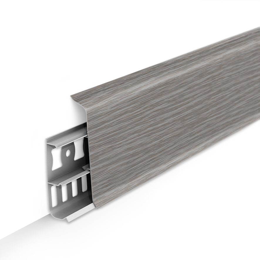 Дизайнерская серия напольного плинтуса со скошенными прямыми углами высотою 8.5 см., подходит абсолютно для всех видов помещений, большой ассортимент цветов позволяет определенно точно подобрать материал под дизайн интерьера и напольные покрытия.