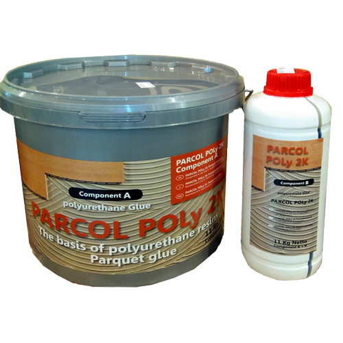 Parcol Poly 2K 11кг – паркетный клей из двух компонентов на основе полиуретана от известного производителя Parcol. Клей Parcol Poly 2K 11кг применяется для приклеивания штучного паркета из европейских пород древесины и массивной доски с размерами не более 2000 х 180 х 20 мм. к стяжкам из цемента и невпитывающим основаниям пола, таким как керамическая плитка или мрамор после предварительной обработки грунтовкой Parcol Praimer P. Также ПУР клей пригоден для крепления фанеры к бетонному основанию пола.