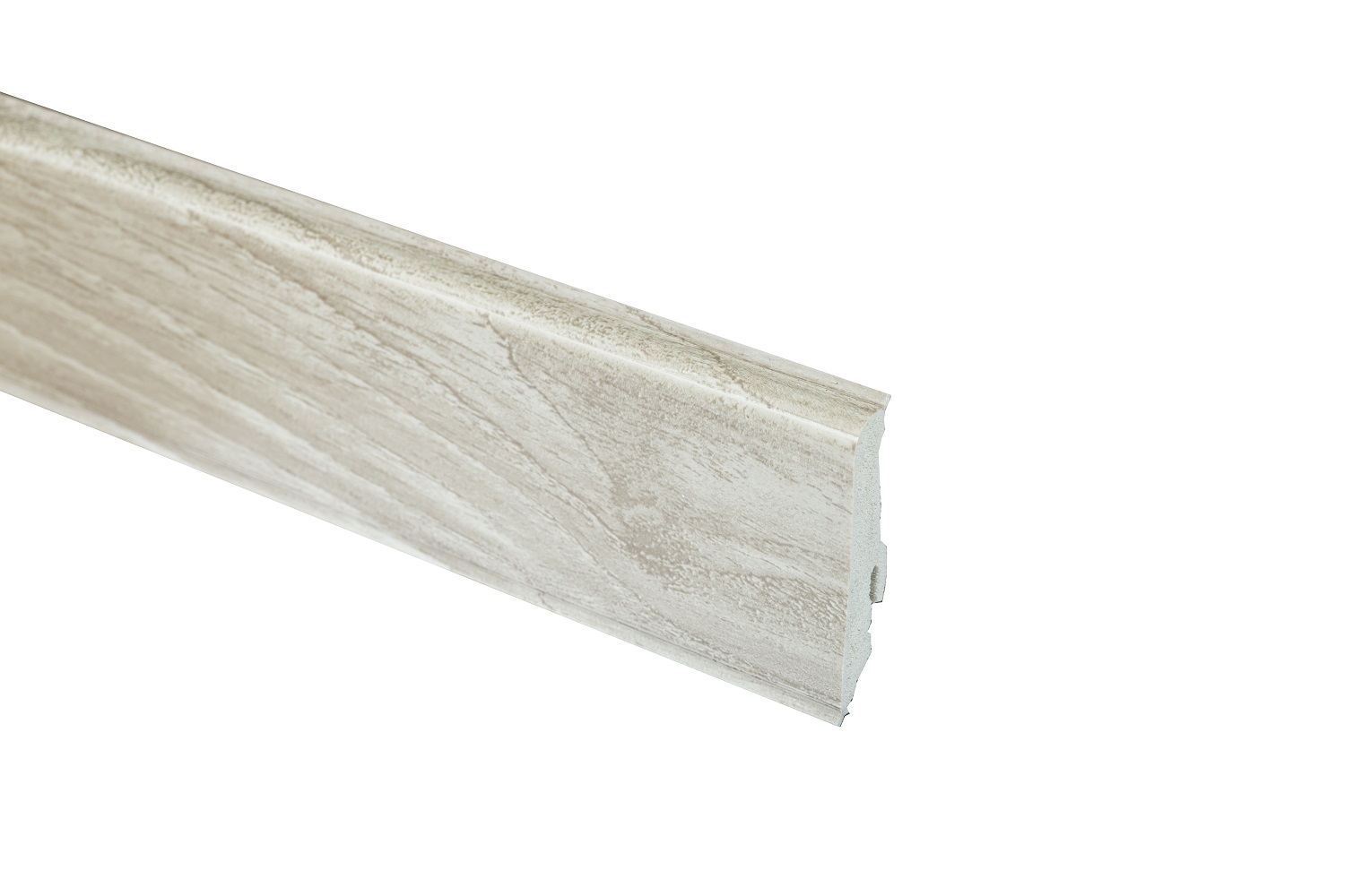 Главная особенность плинтусов Neuhofer Holz — наличие эластичных кромок сверху и снизу. Они не дают влаге попасть за плинтус, а также выравнивают неровности от 1 мм до 1,5 мм у стен и пола.