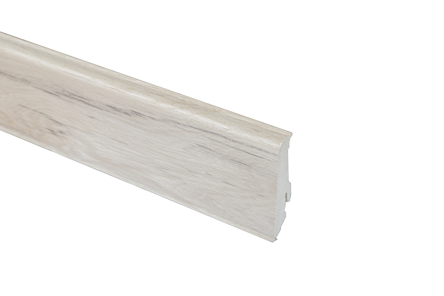 Главная особенность плинтусов Neuhofer Holz — наличие эластичных кромок сверху и снизу. Они не дают влаге попасть за плинтус, а также выравнивают неровности от 1 мм до 1,5 мм у стен и пола.
